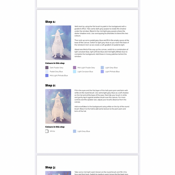 Downloadable paint-along kits designed by artists, made for beginners.